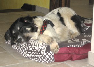 Gestern war auch die Tierärztin da, da ihre Wolfskrallen schon so lange waren, dass sich eine bereits in eine Zehe gebohrt hat. Das Problem haben wir beseitigt, sie war sehr tapfer dabei!