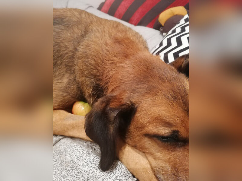 Aja, und er ist mittlerweile auch zu anderen Hunden freundlich, was am Anfang auch überhaupt nicht der Fall war als er mit allen kämpfen wollte. Kurzum: es geht ihm super und er hat ein ganz tolles Leben! (Abgesehen von seiner kranken Niere, aber auch das macht sich nicht sehr bemerkbar außer dass er viel trinkt und Spezialfutter bekommt)