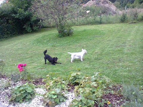 anbei endlich ein Gruppenfoto von unserem "Rudel", Strolchi beim Spielen und von ihm alleine (falls Sie eines für die happy story brauchen - leider schaut er ein bisschen unglücklich drein, weil er aufgeweckt wurde).