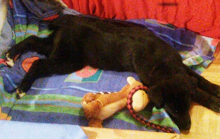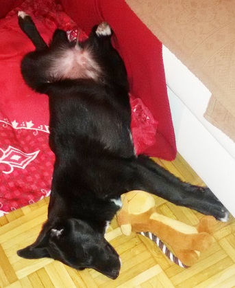 So schnell, das Frauchen sehr darauf achten muss keine Fehler zu machen ;) Kommenden Samstag begeben wir uns zum ersten Welpen/Junghunde Termin, bin schon sehr gespannt. Anbei gibt's Fotos, denke das diese Schlafposition einiges aussagt ;)
