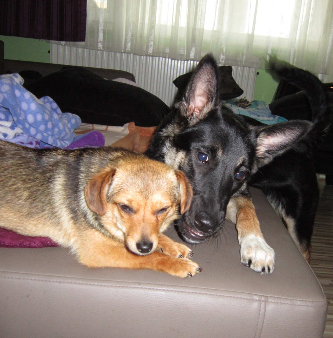 Bori ist ein entzückendes liebes Mäuschen, das von den Kindern "Susi" genannt wird :) ... das gefällt ihnen besser. Unsre Hündin war bei der ersten Begegnung natürlich sehr aufgeregt, hat jedoch keinerlei Revieransprüche geltend gemacht und "Susi" durfte auch gleich ihr Bettchen besetzen. Mittlerweile ist es wieder ruhig geworden, und die Hunde nähern sich täglich mehr an, wie sie an den Bildern sehen. Jessy versucht auch nicht mehr sie zu bespielen, ihre Gartenaction reicht ihr um sich auszupowern. Susi liegt nicht mehr ständig auf der Couch, sondern sucht nun öfter die Plätze auf, die Jessy auch mag. Heute hat sie Ihr sogar schon ein Stück Wurst geklaut - :) Jessy hat da ziemlich dumm aus der Wäsche geschaut *lach*. Versteckt hat sie sich von der ersten Stunde bei uns nicht :). Ich denke Susi fühlt sich sehr wohl bei uns, und wir sind sehr glücklich, das alles so gut funktioniert und zusammenwächst! Susi ist nicht mehr weg zu denken!