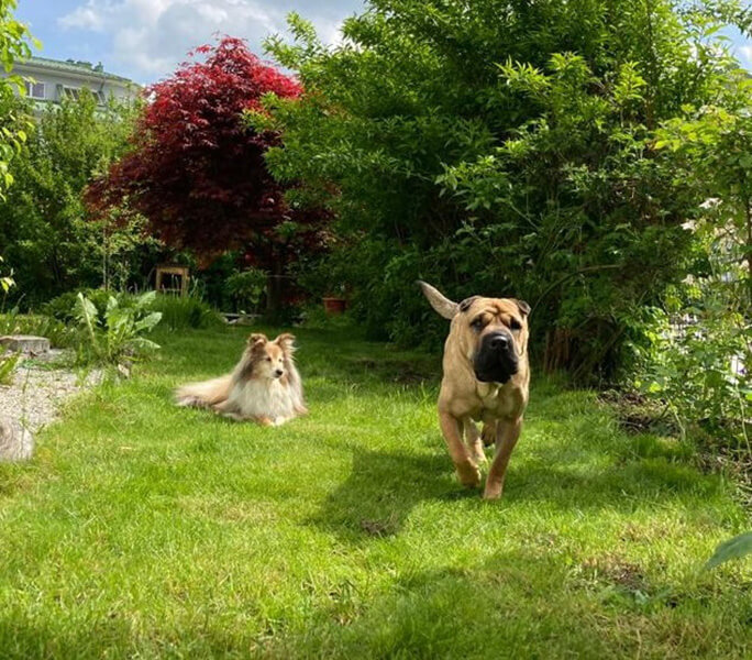 Jetzt in den wärmeren Tagen hat sie nun Dauereinsatz, denn sie nimmt die Aufgabe des bewachen seeehr ernst, aber alles im akzeptablen Rahmen. Kein Bellen außer bei Katzen, sie patrouliert nur die ganze Zeit am Zaun oder sitzt an strategischen Orten. Wenn die nicht vorhanden sind, schafft man sich halt welche. 😭