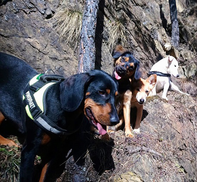 Er lebt problemlos in unserem 4er Rudel und ist ein ausgesprochen lieber, verspielter kleiner Kerl geworden. Wir trainieren jetzt seit einigen Wochen in der Rettungshundebrigarde. Auch hier zeigt er sich sehr motiviert.
