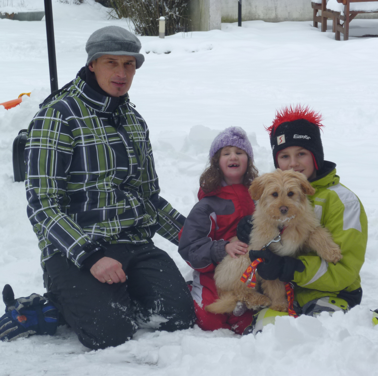 Inzwischen ist eine Woche vergangen und Teddy (Jasmin wurde von unseren Kindern umgetauft, weil sie aussieht wie ein kleiner Teddybär) fühlt sich schon ziemlich wohl in ihrem neuen Zuhause. Den Garten erkennt sie schon als ihr Revier an und verteidigt ihn auch schon mit Bellen vor Eindringlingen (Besuch). Sie ist eine ganz Liebe und Brave, wir haben sie alle in unser Herz geschlossen. Im Anhang sind noch ein paar Fotos von Teddys Aktivitäten. Zum Schluss möchte ich mich noch für die nette und kompetente Betreuung bedanken und wünsche Ihnen noch einen gemütlichen Sonntagabend.