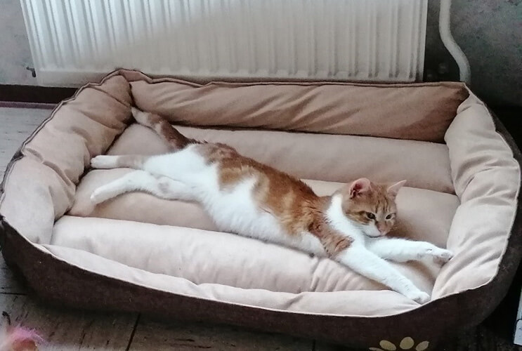 Er ist ein sehr aufgeweckter Kater. Geht mit mir einen halben km spazieren, aber ohne Leine. Er ist sehr anhänglich.