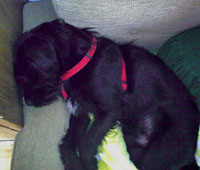 Wenn mein Herrchen mit mir schimpft, obwohl das sehr selten der Fall ist, flüchte ich gleich zu meinem Frauchen.