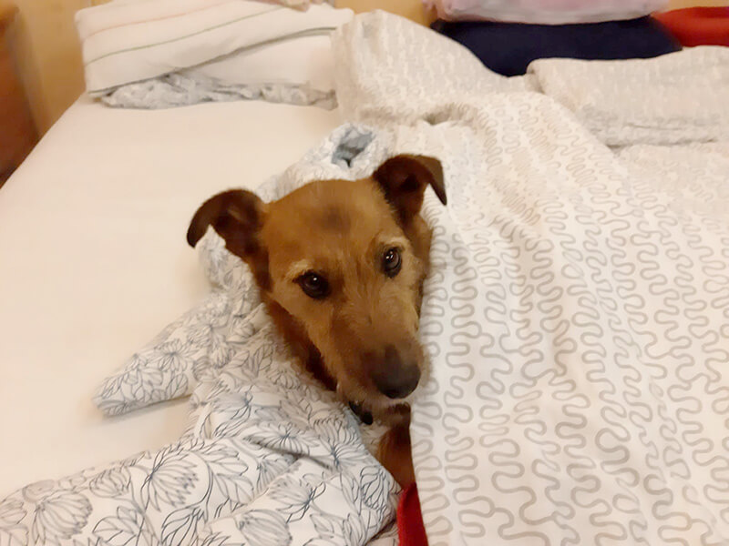 Er ist sehr brav, bellt noch immer nicht und schläft am liebsten im Bett! Angst vor anderen Hunden hat er auch noch immer, aber besser Angst als möglicherweise ein Raufbold!