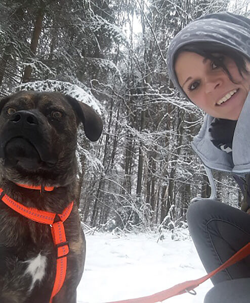 Die anfängliche Angst Männern gegenüber hat sich schon sehr gebessert und auch die Hundebegegnungen an der Leine fallen schon weniger intensiv aus. Wir trainieren ja auch fleißig in der Hundeschule, was uns allen viel Freude macht. Sie lernt sehr schnell, für Leckerlis gibt sie sich ja besonders Mühe.