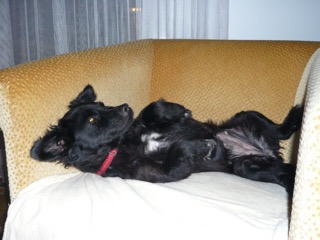 Tiki entwickelt sich prächtig und ist entzückend. Heute hat sie sich zum ersten Mal alleine in den Garten gewagt und ist - ich will es nicht verrufen - den dritten Tag stubenrein. Der Sessel ist ihr bevorzugter Platz, aber manchmal und immer öfter saust sie auch im Haus herum. Auch haben wir heute erstmals einen längeren Waldspaziergang gemacht, der glaube ich ihr ganz gut gefallen hat.