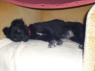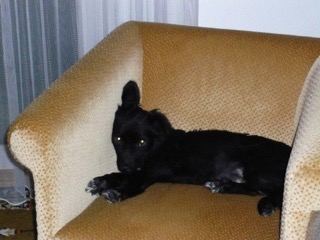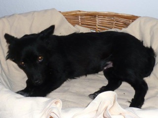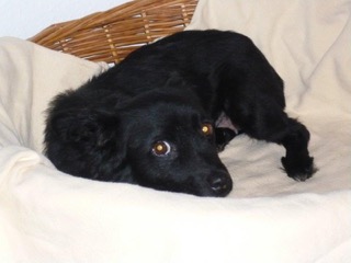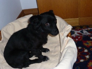 Wie versprochen, die ersten Fotos von Tiki. Das Körbchen hat sie nur in der ersten Nacht benützt, danach erwählte sie den Lehnsessel neben meinem Bett bzw. auch meinen Fernsehsessel. Sie hat riesige Fortschritte in den wenigen Tagen gemacht und begleitet mich schon überall hin. Viele Menschen sind von ihrem reizenden Gesicht ganz entzückt. Das Verhältnis zu unserem Kater ist von ihrer Seite noch etwas gespannt, aber es wird werden. Alleine geht sie noch nicht in den Garten, da muss ich mit ihr an der Leine hinaus - aber auch das ist nur eine Frage der Zeit. Jedenfalls ist sie eine ganz Liebe und es ist eine riesige Freude, zu sehen, wie sich Tiki immer mehr an ihrem Leben freut.