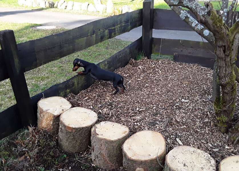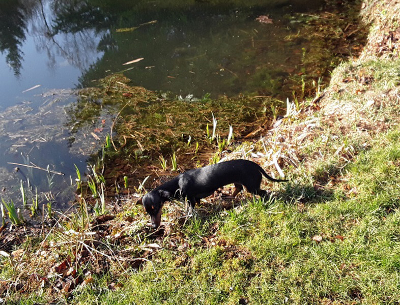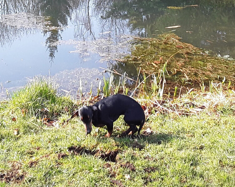 Tilly fühlt sich super wohl bei uns, sie läuft auch schon ohne Leine hier bei uns.