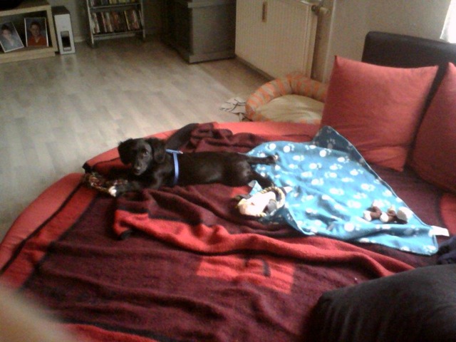 Wie ihr seht, geht es mir sehr gut. Ich habe viel Freude in meinem neuen Heim. Ich bin schon Stubenrein und werde immer frecher. Melde mich bald wieder.