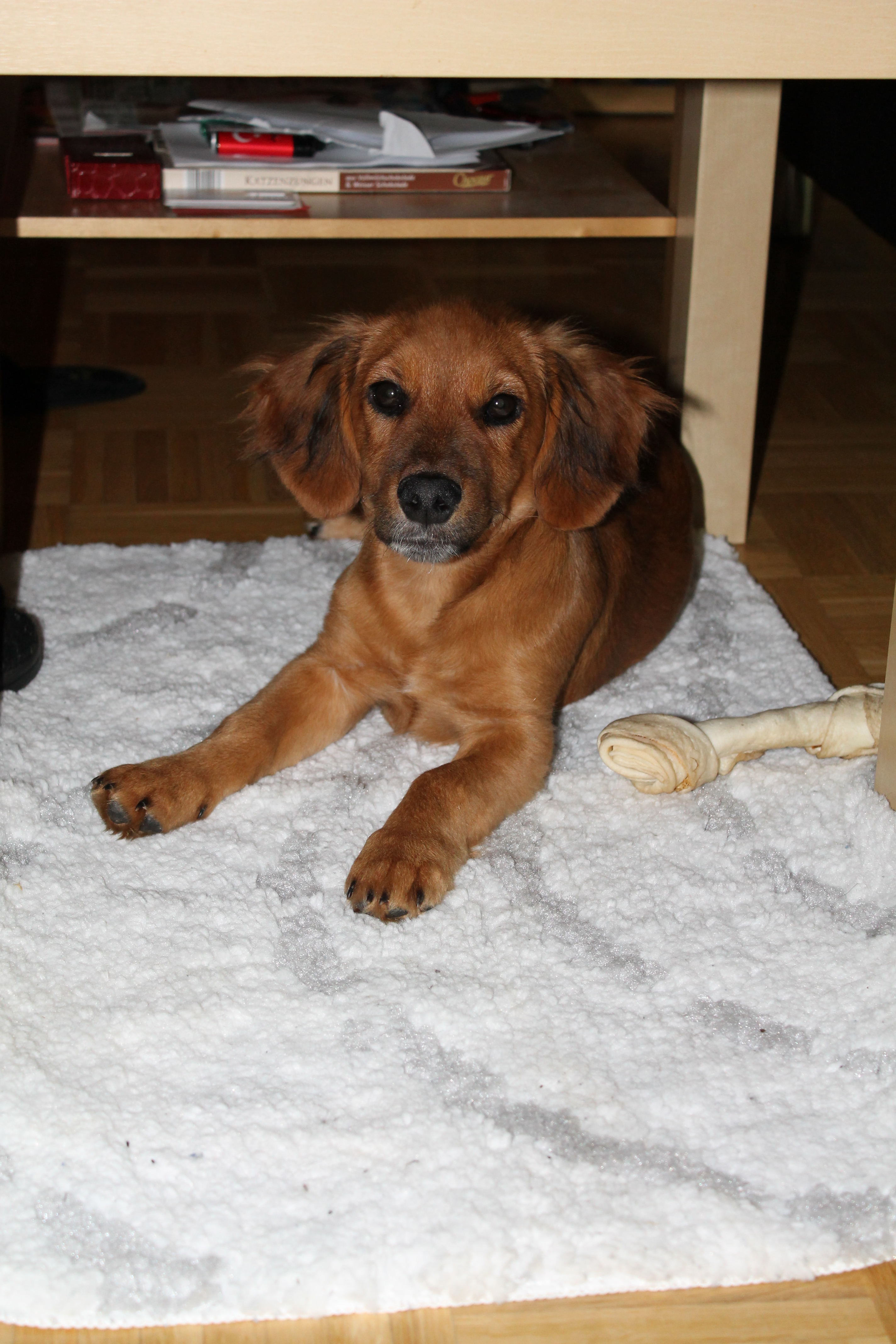 Timmy (vormals Tim) wohnt nun seit mittlerweile gut eineinhalb Monaten bei uns und hat sich rasch eingelebt. Er fühlt sich wohl, gedeiht prächtig und macht uns viel Freude.