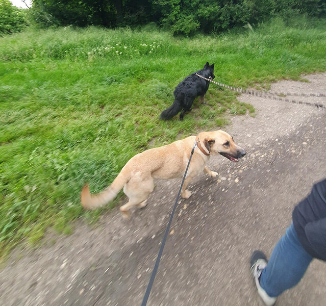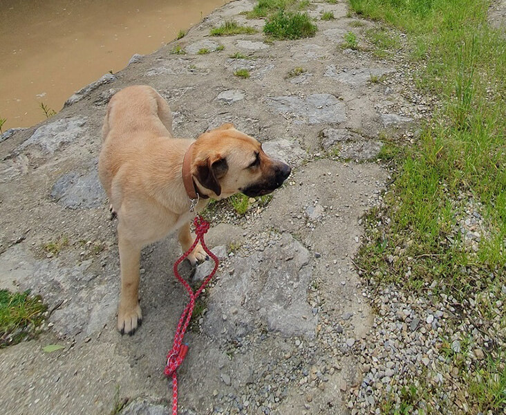 Gassigehen ist gar kein Problem, sie läuft perfekt an der Leine und lässt sich weder von Autos oder Straßen auch nur irgendwie irritieren oder stören. Haben bereits den Marchfeldkanal erkundet.