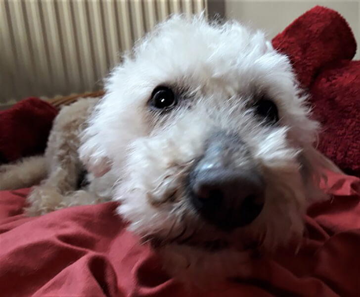 Vielen Dank fuer das Foto. Tippy fuehlt sich, so ist unser Eindruck, sehr wohl. Bei den Spaziergaengen zeigt er sich sehr interessiert, zu Hause ruht er entspannt und sucht unsere Naehe. An Autos und ihm unbekannte Geraeusche muss er sich noch gewoehnen.