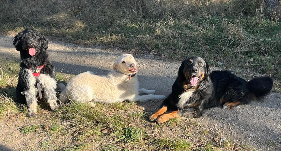 Anbei übermittle ich Ihnen noch zwei Bilder (Tobby bei der Mäusejagd und mit zwei seiner Hundefreunde)