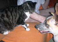 Toni ist einfach ein Traumhund. Nach der mittlerweile 14-tägigen Kennenlernphase, sind wir ein Herz und eine Seele. Auch mit dem Kater gibt es keine gröberen Probleme, Toni ist dem Kater noch ein bißchen zu wild, aber er geht schon mit Gassi. Das Autofahren macht Toni auch Spass.