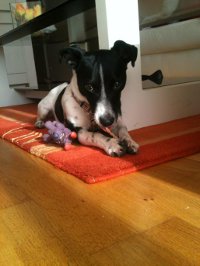 UNA ist immer hoch erfreut andere Hunde zu treffen, sei es in einer Hundezone oder ausserhalb von Wien (Neuwaldegg-Wiese). Das heißt: 1mal am Tag ist ausgiebiges Spielen auf 1,5 - 2 Stunden angesagt :-).