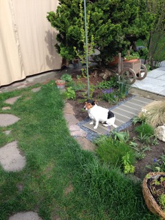 Ich glaube mich erinnern zu können, dass seinerzeit in der Anzeige gestanden hat, dass Uno keine Katzen mag. Anfangs wollte er ja alles was ihm über den Weg lief jagen. Sogar einem Dachs ist er hinterher. Jetzt haben wir damit überhaupt keine Probleme mehr. Da wir in einer Gartengegend wohnen und auch viel durch Gartenanlagen gehen haben wir natürlich auch viele Begegnungen mit anderen Tieren. Wenn Katzen, die an Hunde gewöhnt sind stehen bleiben um sich von mir streicheln zu lassen bleibt er ganz ruhig. Entweder er drängt sich zwischen mich und die Katze oder er beschnüffelt die Katze.