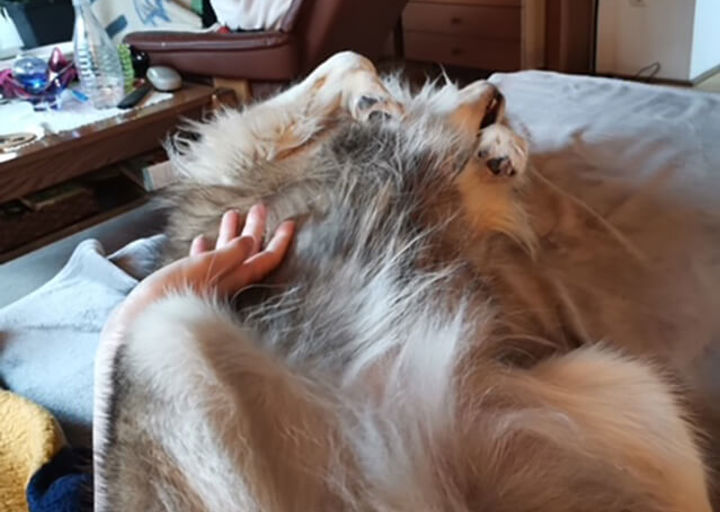 Den Sommer haben wir mit vielen Spaziergängen im Wald einschließlich Baden im Bach verbracht. Hitze ist nicht so sein Ding, beim Kuscheln wirds ihm dann schnell zu warm. Kein Wunder mit dem langen, dichten Fell 😅 Kaum ist das Wetter kühler, schmiegt er sich aber wieder ganz dicht an uns ran. 🥰
