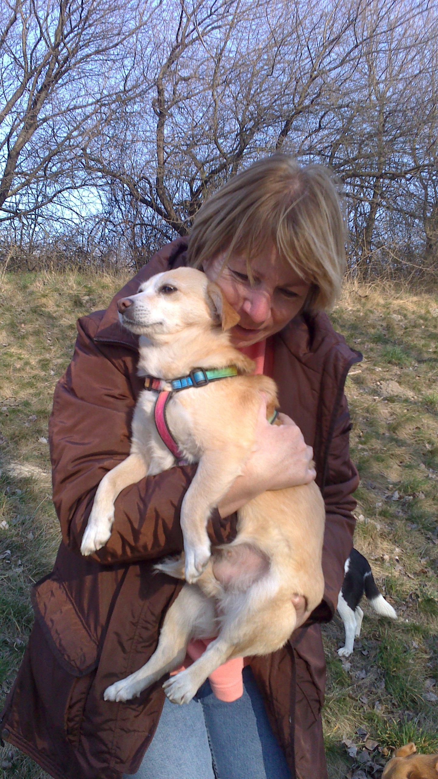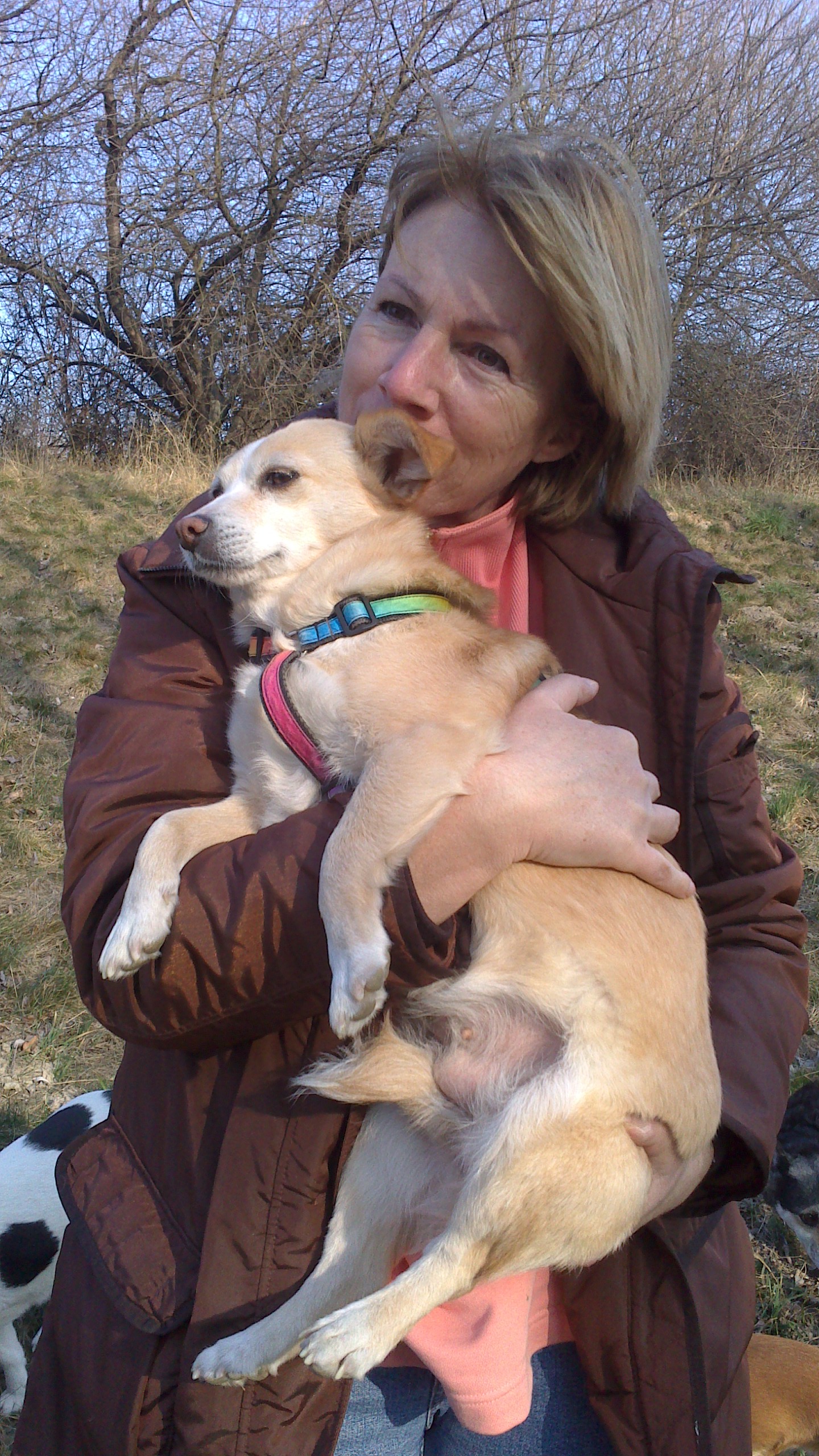 Anbei ein paar Fotos von der kleinen Wanda. Sie war ja wirklich anfangs sehr arm, traute sich 2 Wochen nicht aus Ihrem Körbchen raus. Sie spazierte nur dann im Haus herum, wenn ich mit meinen Hunde nicht da war. Jetzt ist es genau umgekehrt, Sie liebt mich sehr und kann nicht genug mit mir kuscheln, ich hatte noch nie so einen anhänglichen Hund. Die kleine Wanda passt wunderbar in mein Leben und Sie versteht sich auch bestens mit meinen Hunden!