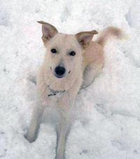 Mit anderen Hunden und auch Katzen versteht er sich sehr gut, er liebt meinen Robby innig und weicht ihm nicht freiwillig von der Seite. Er tollt mit ihm um, und man sieht er ist glücklich, holt sich auch die Streicheleinheiten. Der Schnee gefällt ihm auch sehr gut!