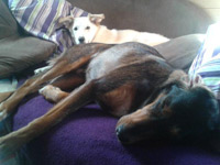 Seine Darminfektion ist ganz abgeklungen, er spielt sehr gerne mit Robby und kuschelt liebend gern mit uns.