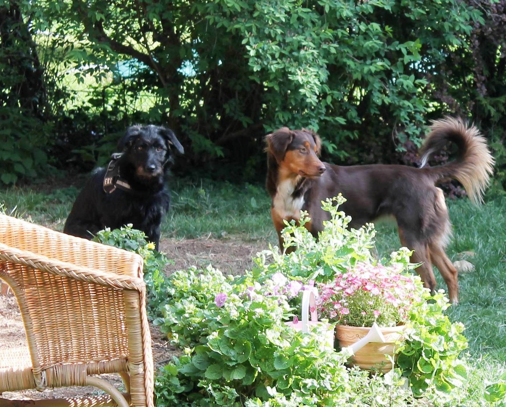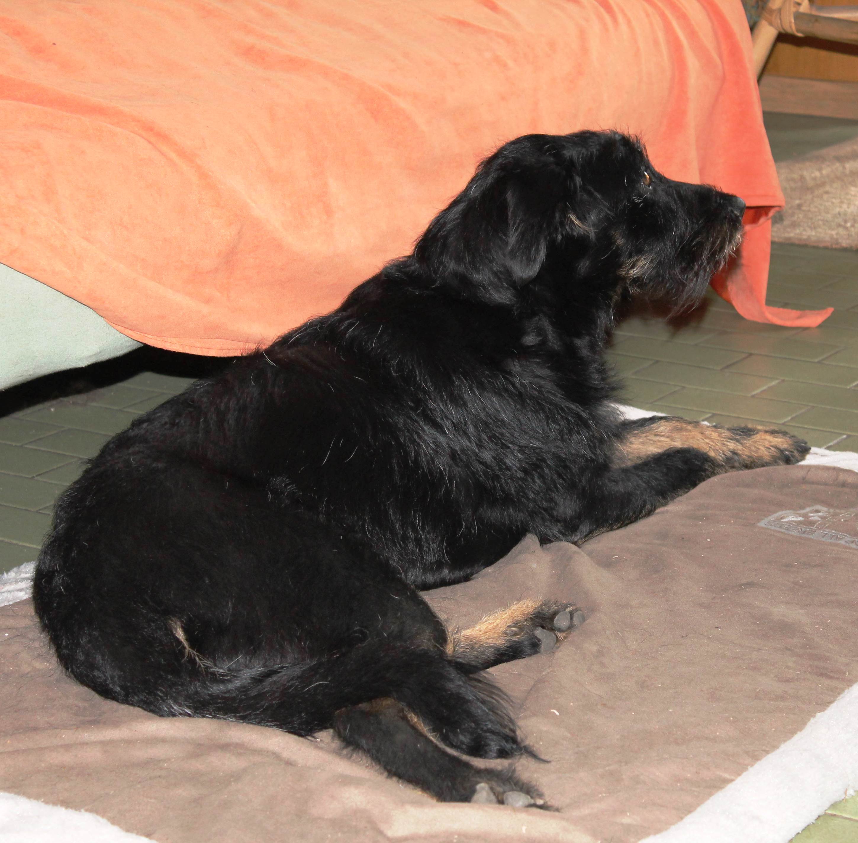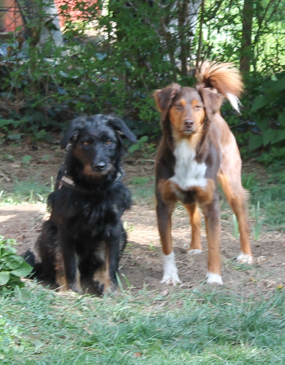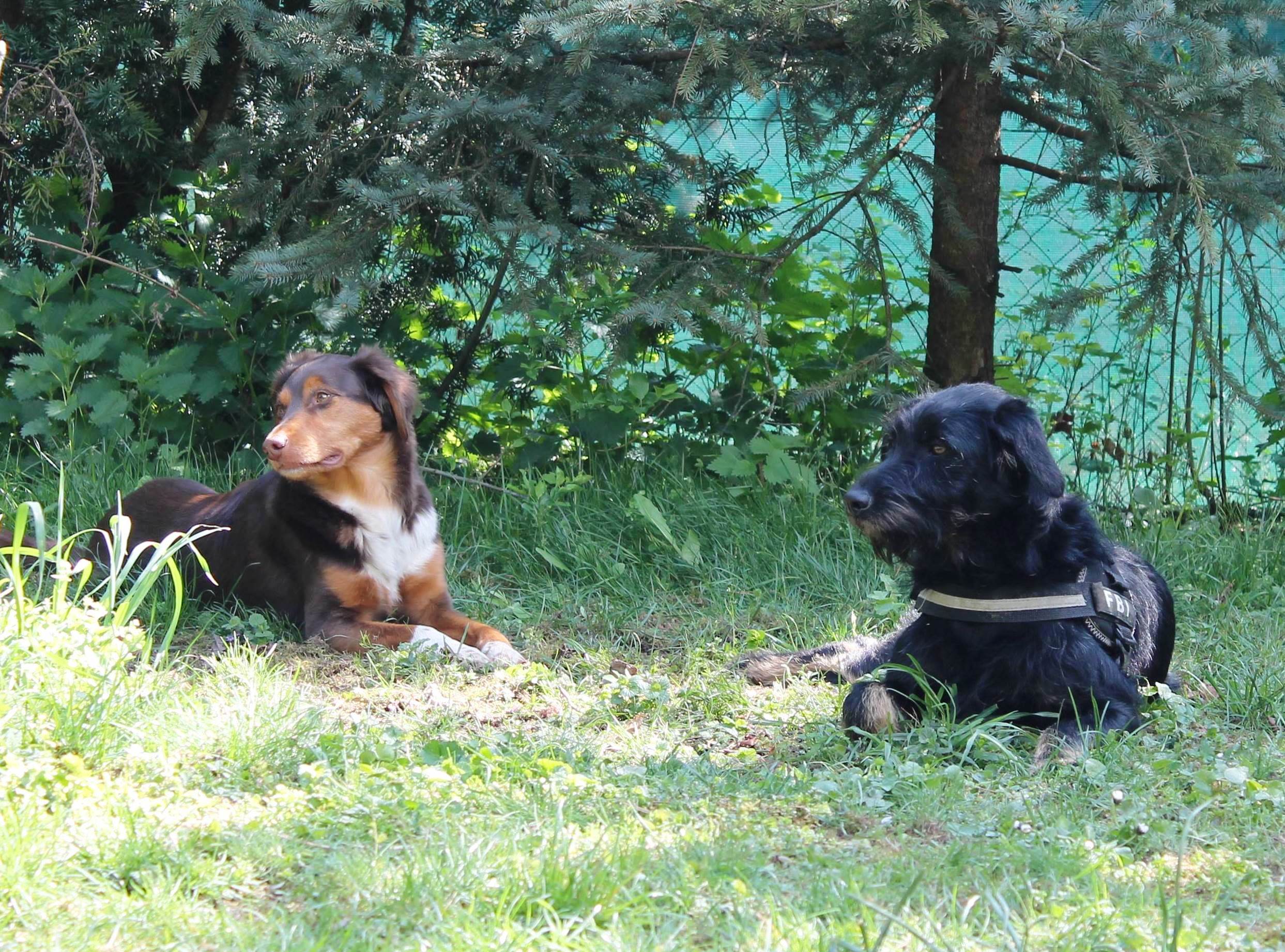 Tja und die beiden Mädchen: Naja, die große Liebe ist es nicht und so richtig dicke Freundinnen werden sie wohl auch nicht, glaube ich. Mona verteidigt die Ressource Futter ziemlich, da gehen wir sehr vorsichtig damit um und Winnie verteidigt ihr Plätzchen so richtig "Schnauzer-mässig" - auch schon mal präventiv und lässt Mona dann nicht ins Haus. Aber auch da passen wir sehr gut auf, so gut wir es halt abfangen können und übernehmen dann schon mal das Ruder.  ;-)