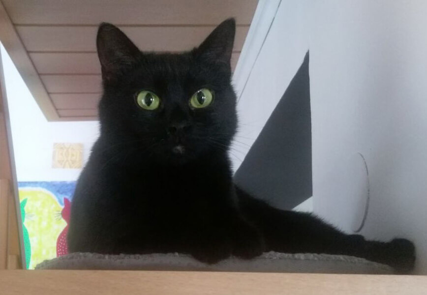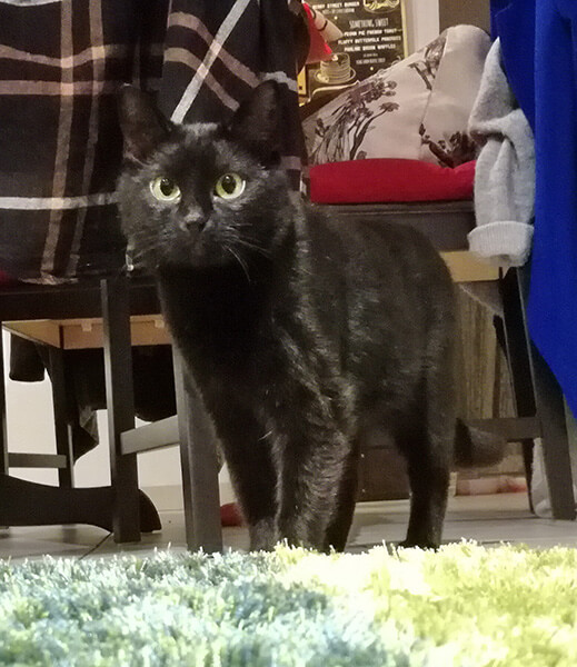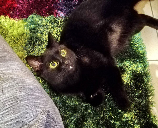 Sie läuft schon frech und fröhlich durch die Wohnung, spielt sehr gerne, ist verschmust und redet viel mit uns und Luna (zweite Katze).