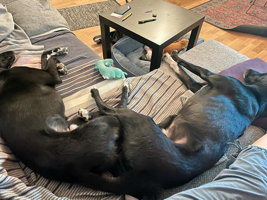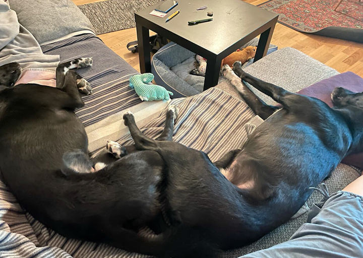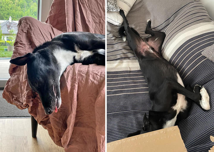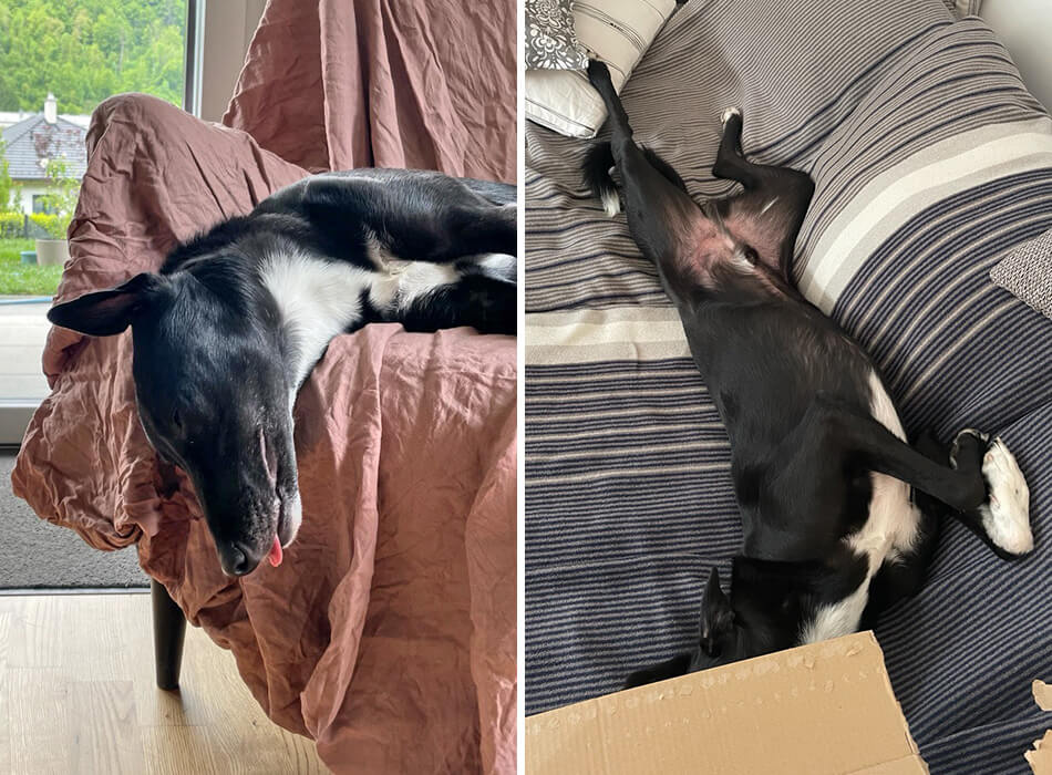 Die Burschen haben den Umzug ganz tapfer mitgemacht obwohl es mitunter sehr stressig war. Nun sind wir schon gut eingelebt und sie haben auch im neuen Garten noch genug Platz zum toben und spielen, und tun dies auch zur Genüge. Ansonsten finden sie jeden Tag neue kreative Schlafpositionen, wie man auf den Fotos sehen kann!