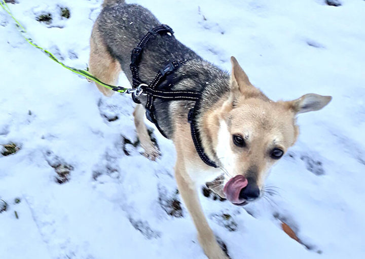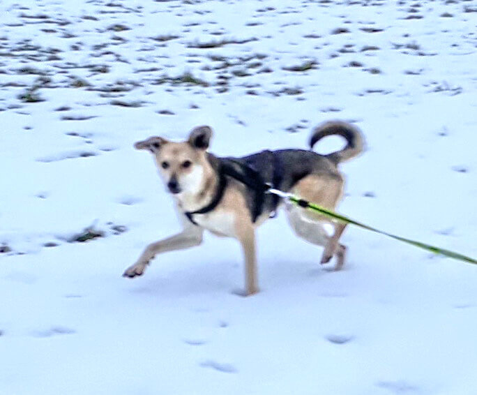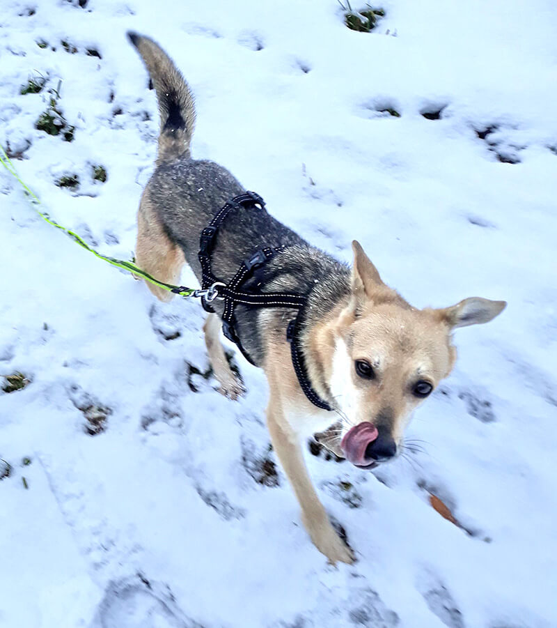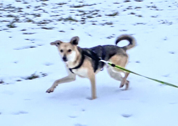 Hope blüht auf, wird jeden Tag selbstbewusster, ist verspielt, hüpft im Schnee vor Freude wie ein Ziegenbock, zeigt sich verschmust und anhänglich, schenkt der Familie sein Vertrauen und versteht sich prächtig mit seinen Hundekumpels. Es ist einfach wunderbar, dass er trotz seiner schlimmen Vergangenheit den Mut nicht verloren hat!