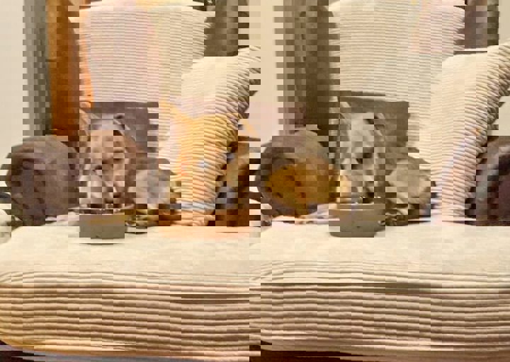 Er ist so dankbar für sein neues Zuhause, dass er jede Nacht heimlich ins Badezimmer schleicht und ein Kleidungsstück seines Frauchens in sein Bettchen holt.