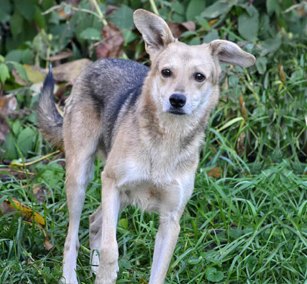 Er lebte als Straßenhund in Rumänien und wurde von Hundefängern so brutal mit der Schlinge eingefangen, dass sein Kiefer dabei brach.