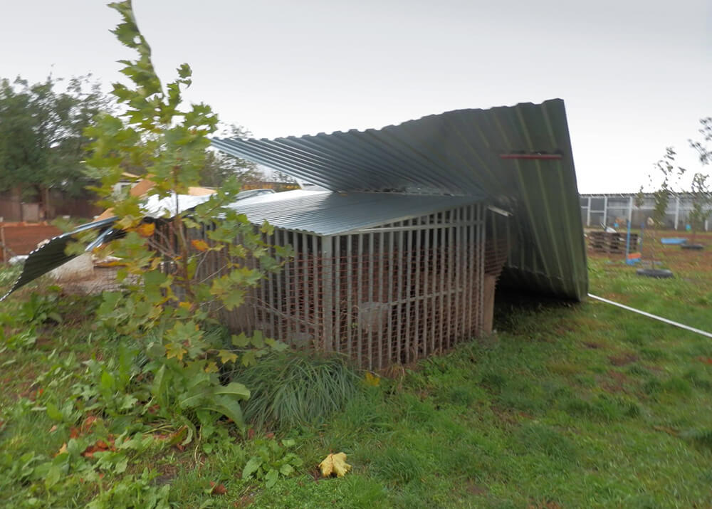 Am Sonntag, 29. Oktober 2017, stürmten orkanartige Windböen über den Hof der ANIMAL CARE AUSTRIA Partnerorganisation Ebsegély in Ungarn. Die CARE STATION erlitt leider äußerst gravierende Sturmschäden.