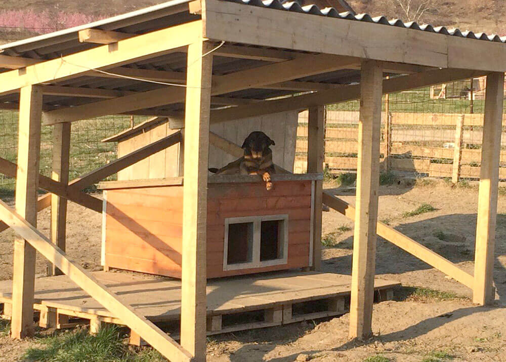 Das Ziel, den Schatten- und Wetterschutzbau fortzusetzen und vor allem noch vor dem Winter jedem Hund einen Platz in einer isolierten Hütte zu sichern, wurde fast erreicht. Es müssen noch ein paar Hütten isoliert werden und es fehlen in einigen Gehegen noch Holzterrassen, auf denen die Hunde Schutz vor Matsch, Schnee und Eis finden können. Im Vergleich zum Jahr davor jedoch, als es keine einzige isolierte Hütte und überhaupt keinen Schatten im Sommer gab, ist das ein toller Erfolg.