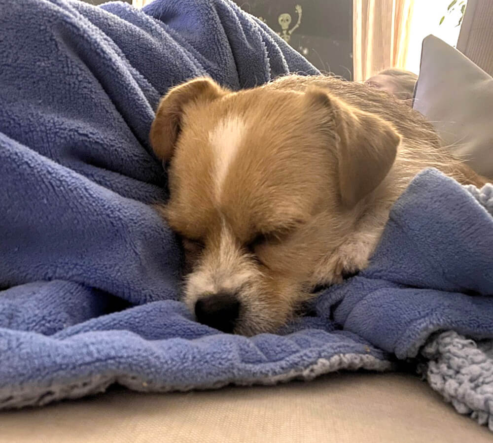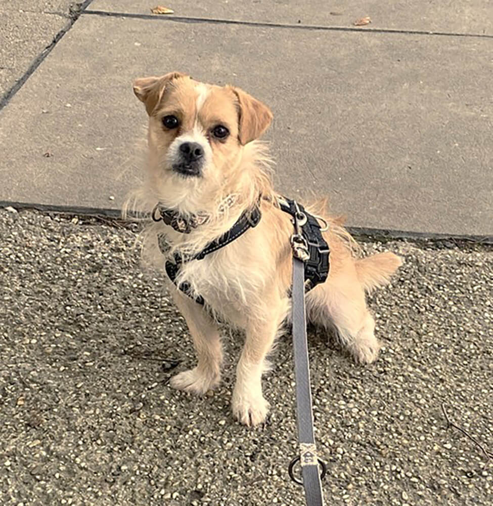 Der Rüde hat eine Schulterhöhe von 29 cm und wiegt 6,7 kg.