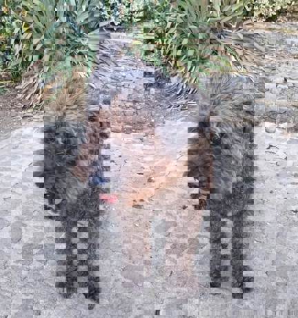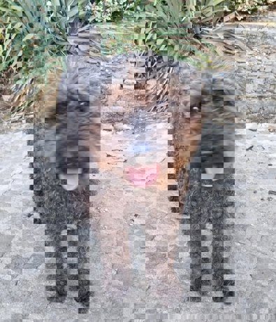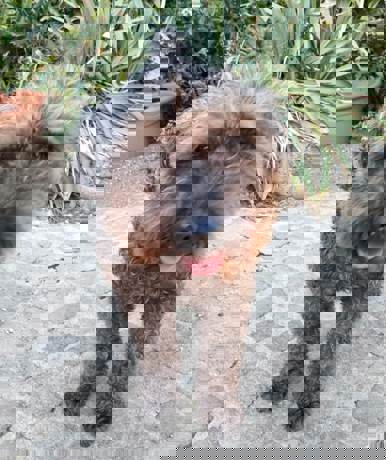 Der Rüde hat eine Schulterhöhe von ca. 40 cm und wiegt ca. 15 kg.