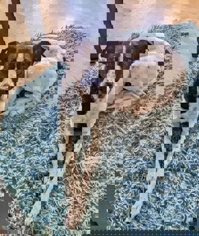 Die Hündin hat eine Schulterhöhe von 46 cm und wiegt 14 kg.