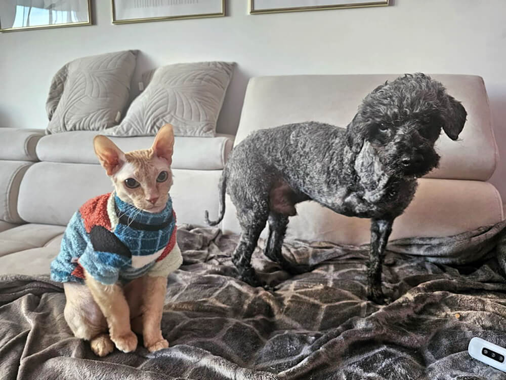 Auch im Alltag unterwegs zeigt er sich vorbildlich: Er begleitet seine Pflegefamilie regelmäßig in Cafés, wird dort immer entspannter und liegt die meiste Zeit brav auf seiner Decke, manchmal bettelt er am Nachbarstisch um Streicheleinheiten.