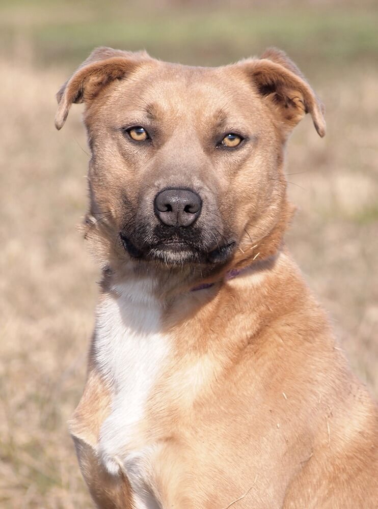 Die Hündin mit den schönen honigfarbenen Augen ist eine fröhliche, aufgeweckte, völlig unkomplizierte und sehr freundliche junge Hundedame, mit einem sanften Gemüt, die schnell die Herzen der Menschen erobert und jedem sofort zugeht. Sie ist extrem liebesbedürftig und fordert Streicheleinheiten vehement ein, wünscht sich aber ebenso Beschäftigung und Training, denn sie hat viel Freude am Erlernen neuer Dinge und ist auch ein geeigneter Partner für Joggingrunden. Sie ist leinenführig, gehorsam und kennt bereits die Grundkommandos. Aufgrund ihrer Gutmütigkeit kann man ihr den Futternapf oder einen Knochen problemlos wegnehmen. Sie wäre ein toller Familienhund und auch eine Bereicherung für Familien mit älteren Kindern.