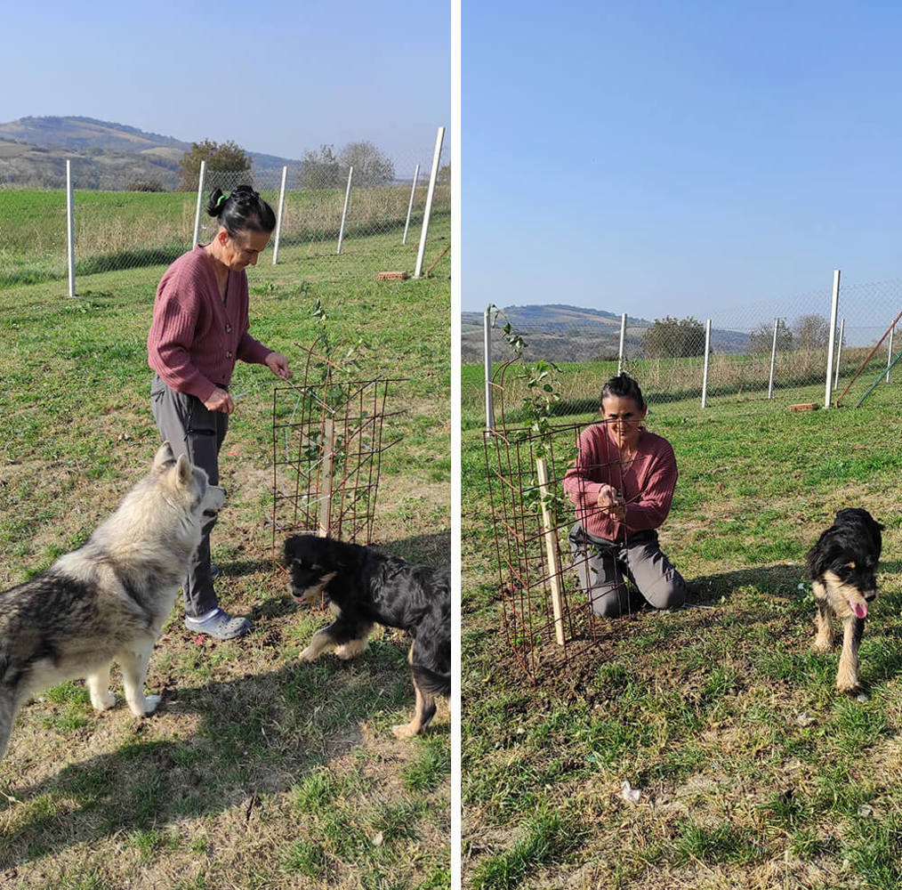 Zusätzlich zu diesen großen Umbauarbeiten wurden noch 10 Bäume auf den drei Auslaufplätzen gepflanzt. Diese sollen vor allem im Frühjahr und Sommer natürlichen Schatten spenden und die Hunde vor der Hitze schützen.