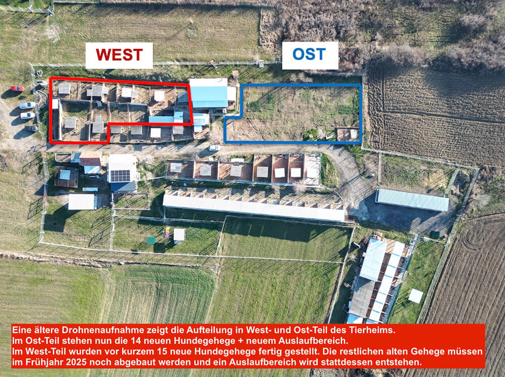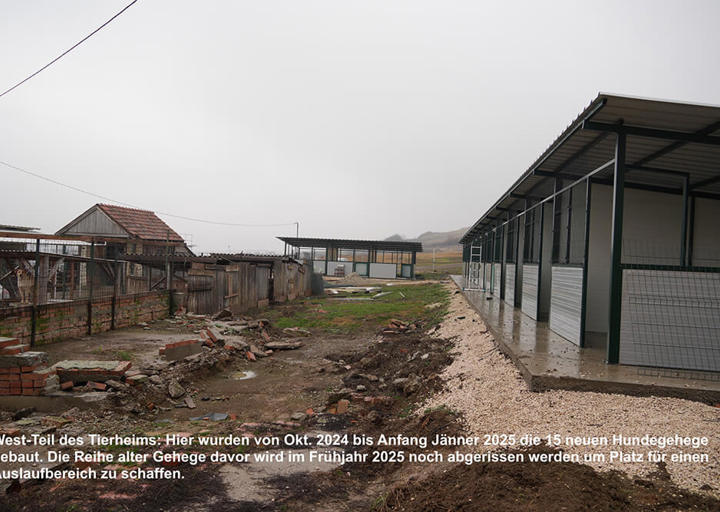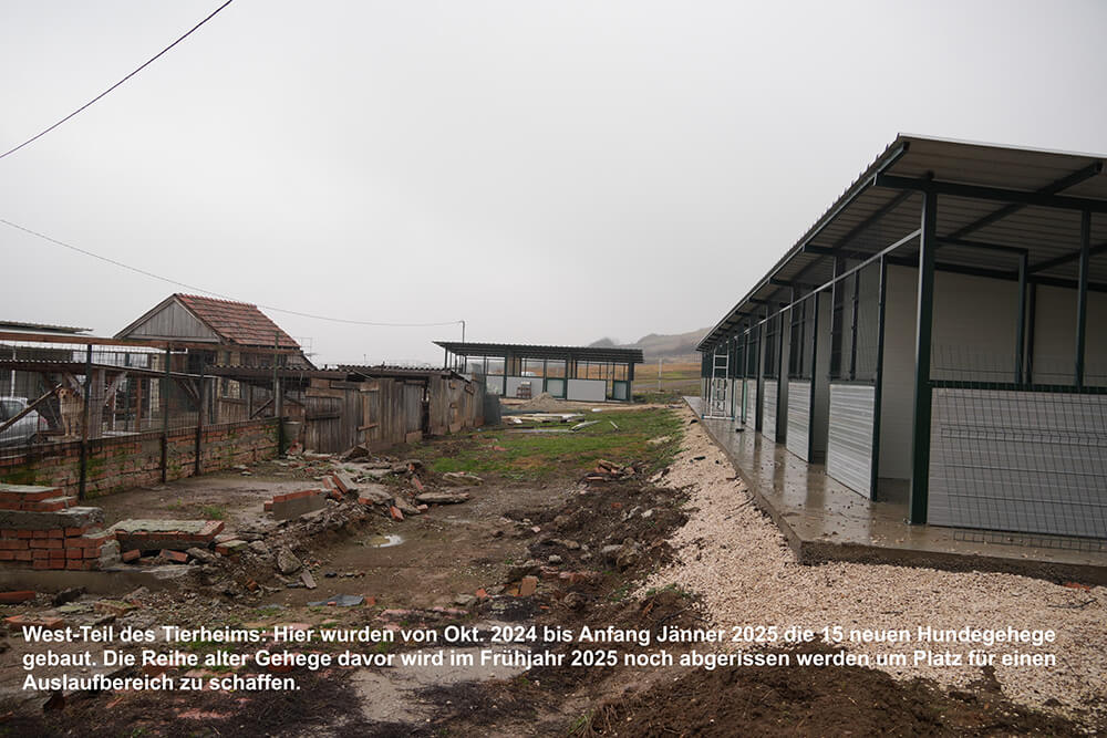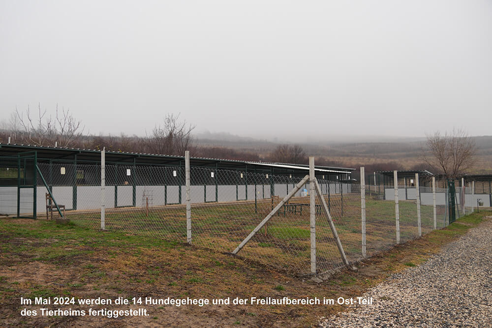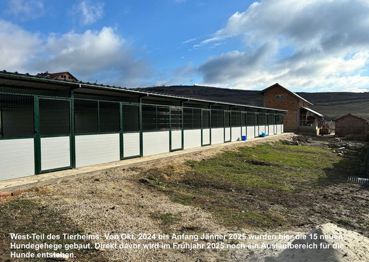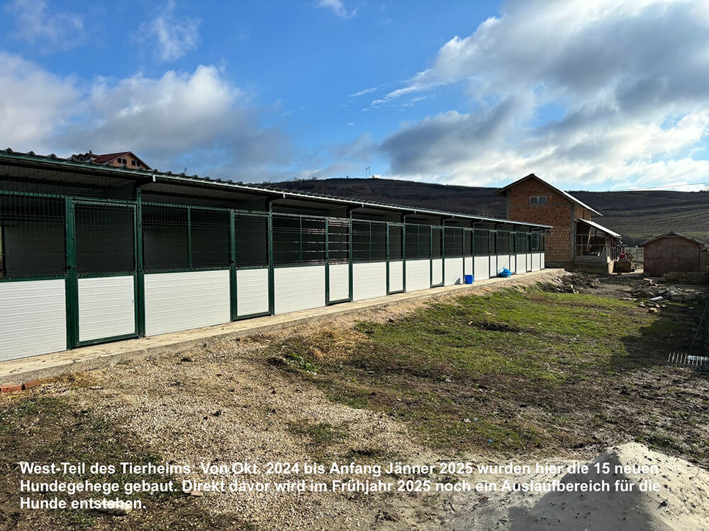 Oktober 2024 – Anfang Jänner 2025: Im Herbst und Winter fand der Bau von 15 weiteren neuen Hundegehegen im West-Teil des Tierheims statt. Außerdem wurden alle Gehege mit neuen Hundehütten ausgestattet, die gut isoliert, sauber und leicht zu reinigen sind.