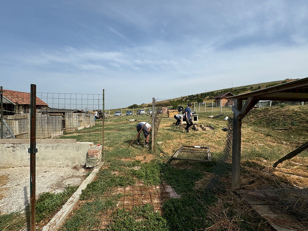 Dieser entspricht nicht mehr den EU-Hygienevorschriften und muss neu errichtet werden. In mühevoller und schweißtreibender Arbeit wurden Gehegezäune entfernt, alte Hundehütten abgebaut, marode Schattenbauten aus Holz zerlegt, das Material sortiert und brauchbare Baumaterialien gestapelt, um sie wiederverwenden zu können.