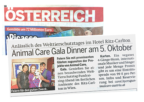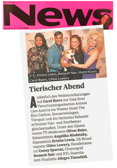ACA Welt-Tierschutztag Gala 2018, NEWS, 19. Okt. 2018