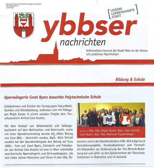 Carol Byers besucht Polytechnische Schule, Ybbser Nachrichten, Mai 2019