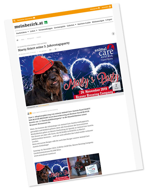 Ein Prost auf die Hunde zum Welttierschutztag, meinbezirk.at, Okt. 2022