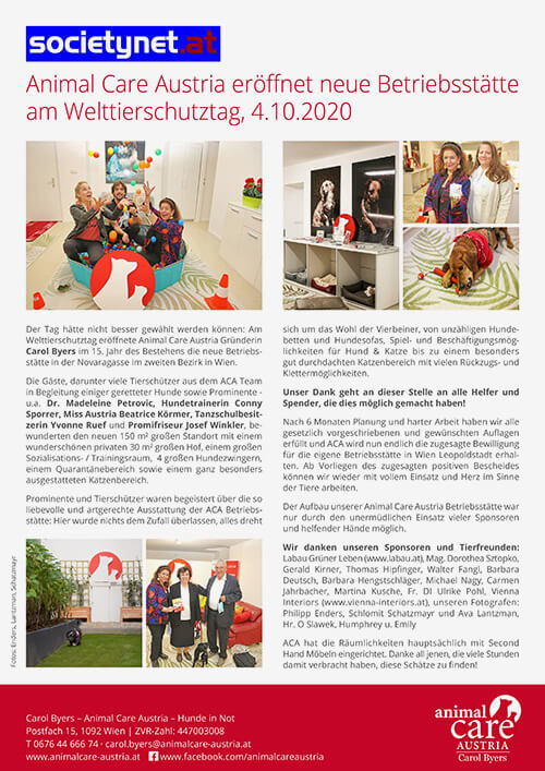 Animal Care Austria eröffnet neue Betriebsstätte am Welttierschutztag, 4.10.2020