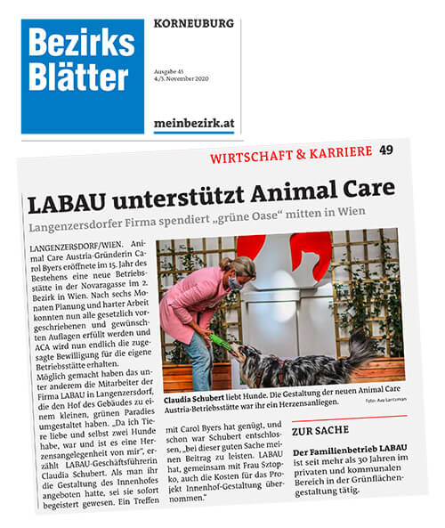 LABAU unterstützt Animal Care, BZ Korneuburg, Nov. 2020