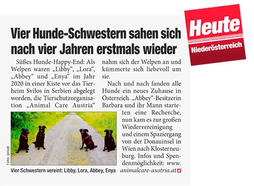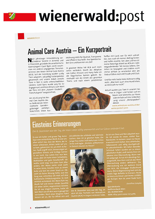 Aus liebe zu Tieren, Wiener Bezirkszeitung, Nov. 2020