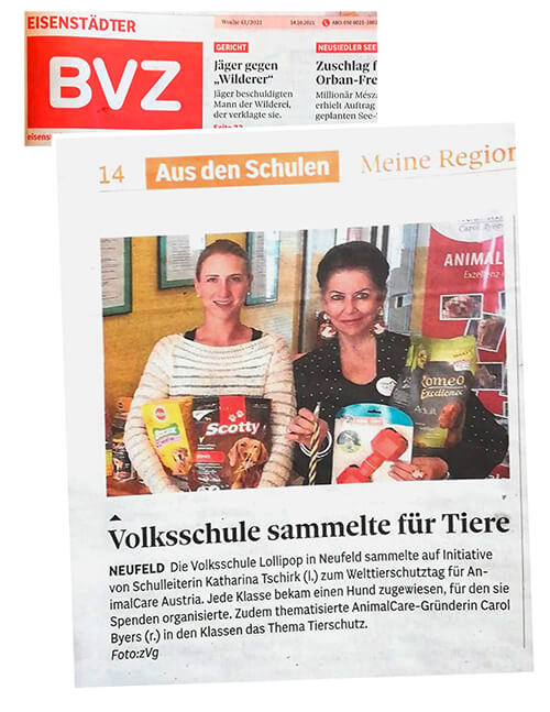 Volksschule sammelt für Tiere, BVZ, Okt. 2021